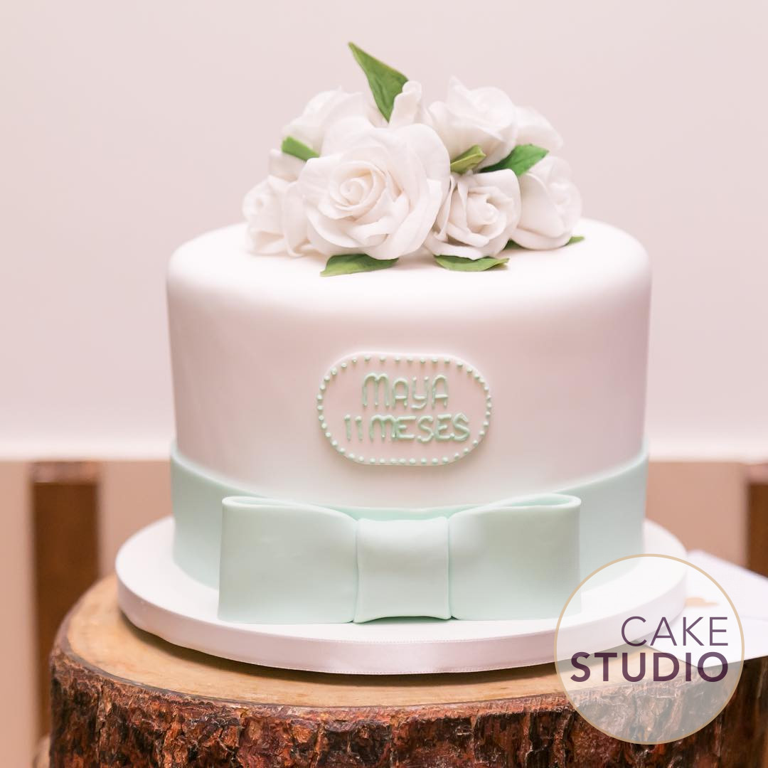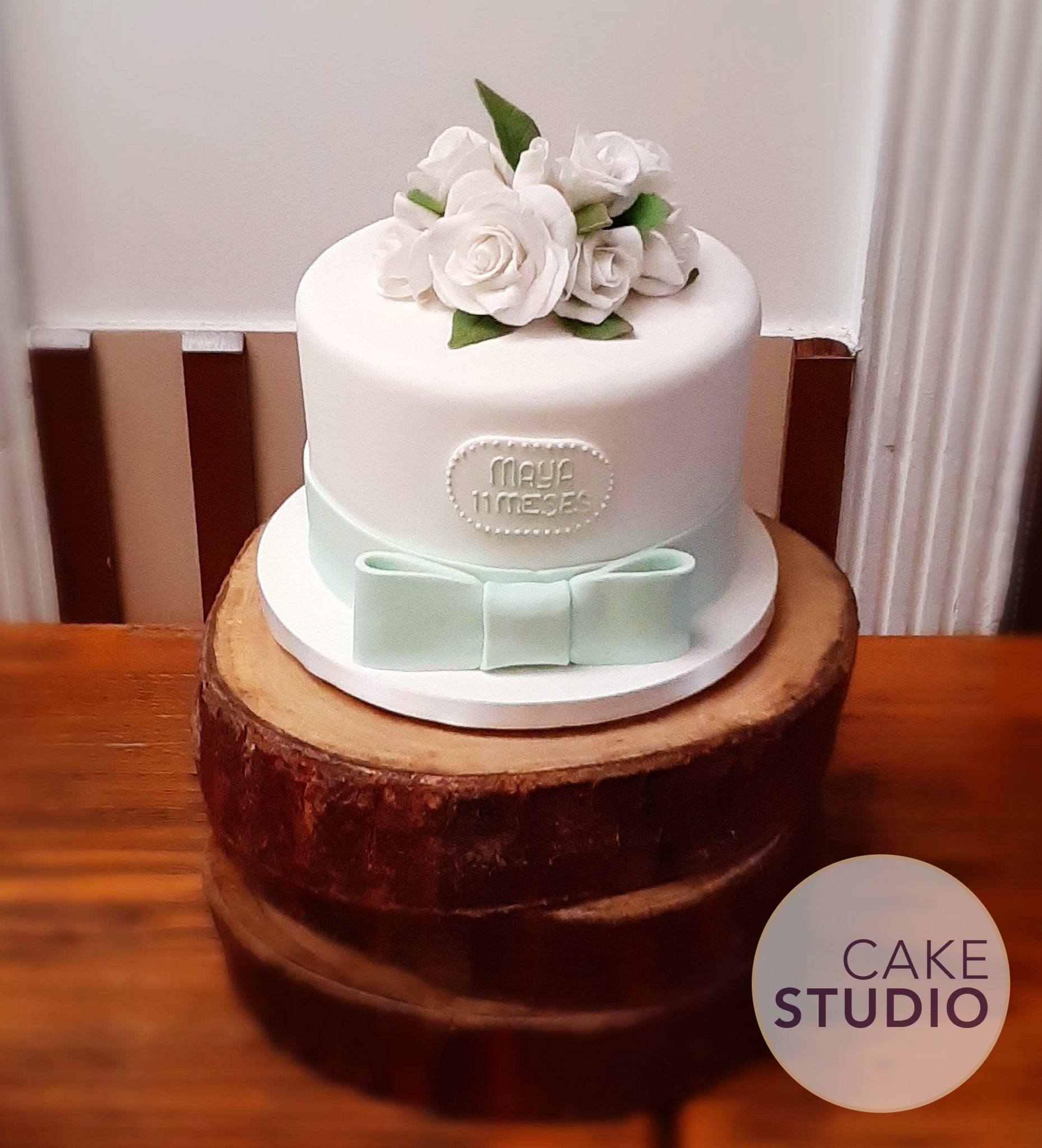 O 11° mesversário da filha da Paloma Tocci coincidiu com o batizado da menina. Para a ocasião, ela escolheu um bolo de batizado branco e verde, com flores de açúcar (rosas brancas), algumas folhagens e laço na cor Wedgewood Green, um verdinho bem delicado.