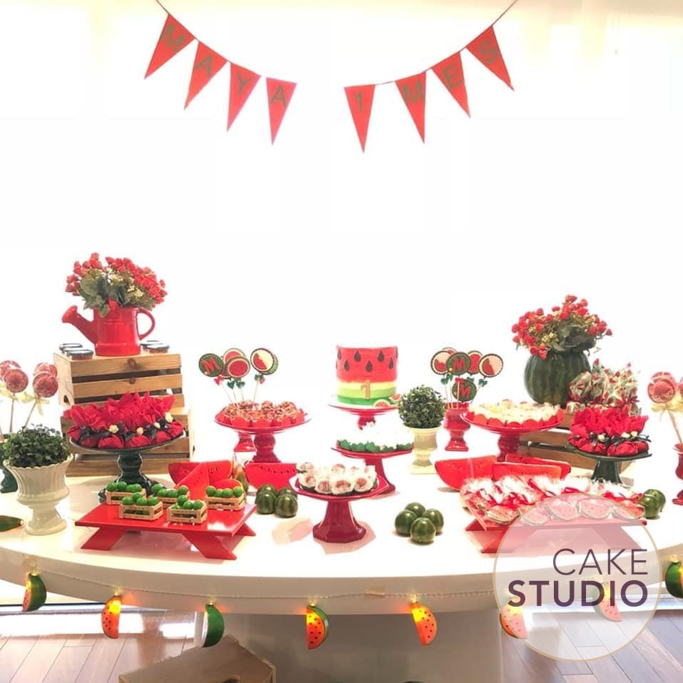 Para o 1º mesversário de sua filha Maya, a apresentadora do Jornal da Band Paloma Tocci escolheu um bolo decorado de Melancia. Mais alto que o tradicional, este foi um bolo decorado sem pasta americana, coberto com nosso delicioso buttercream.